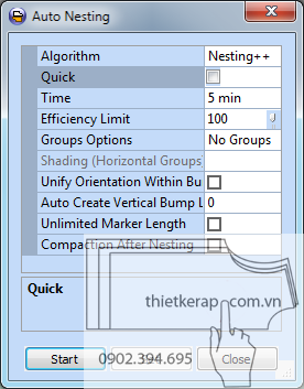Algorithm: chọn chế độ giác.Ta nên chọn chế độ Nesting++ vì chế độ này cho hiệu suất giác sơ đồ tốt hơn.