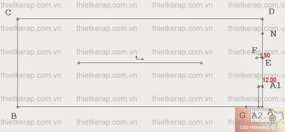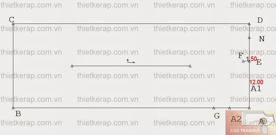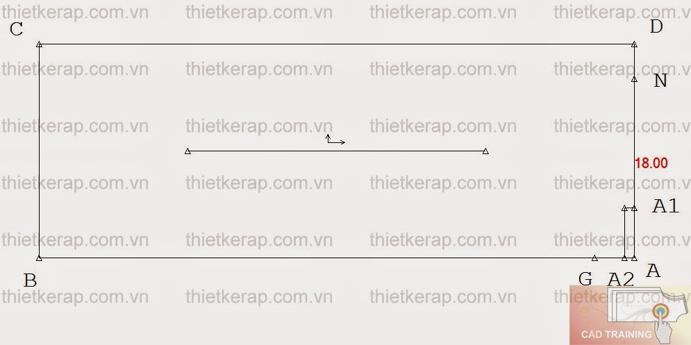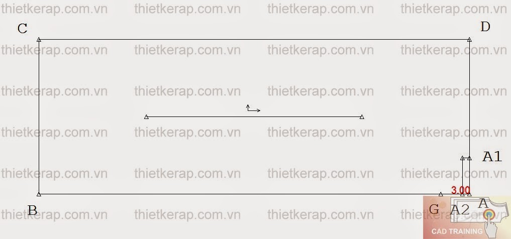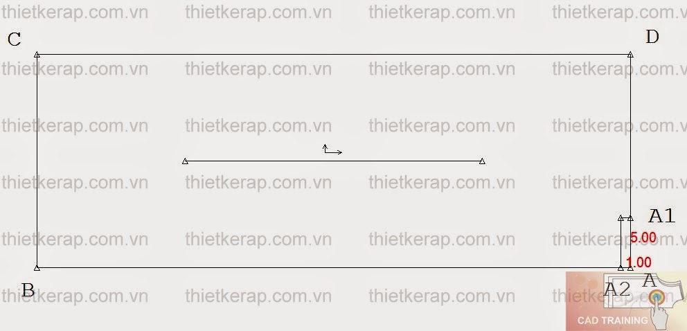 - Vẽ hình chữ nhật ABCD: