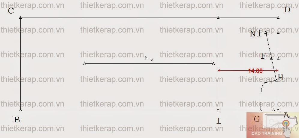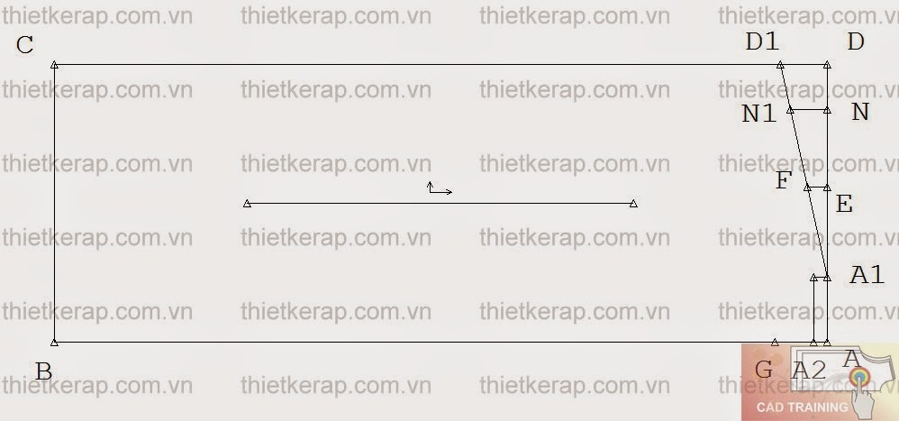 EF: xuôi vai = xuôi vai căn bản - 1cm = 1/10 Ngang vai - 1cm = 1.5cm