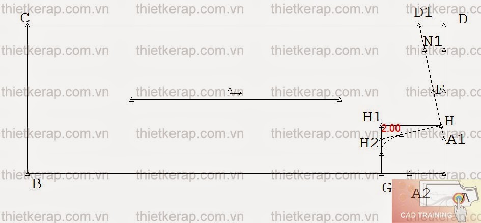 Lấy H1H2 = 2cm. Đánh cong cổ U.