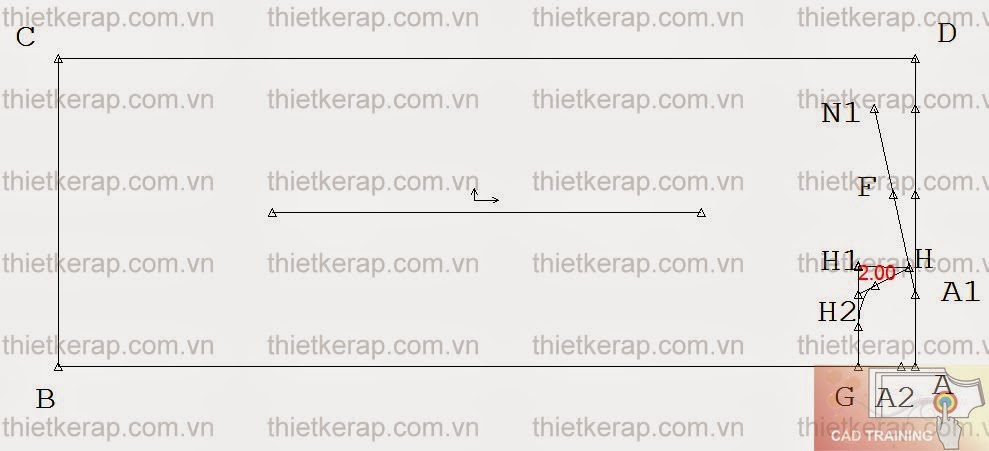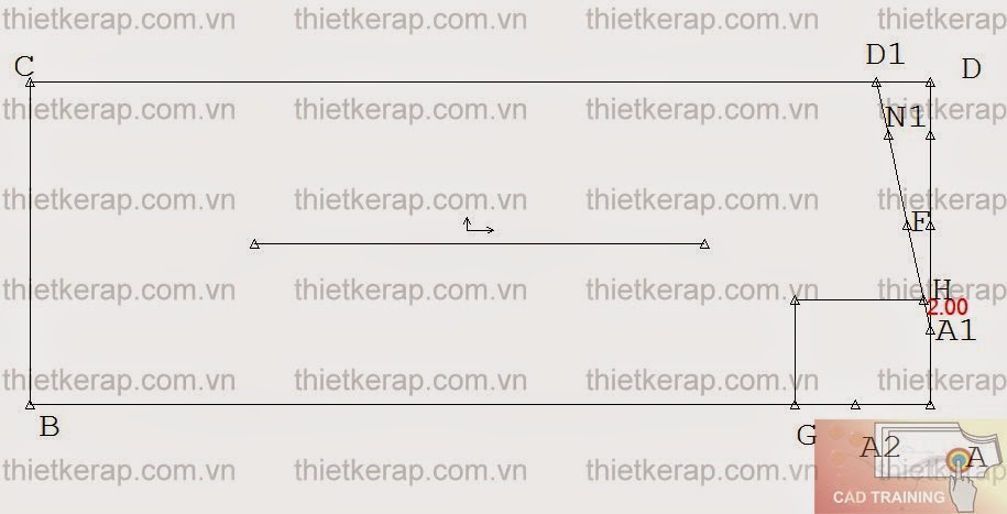 Từ đường thẳng A1D1 lấy A1H= 2cm.